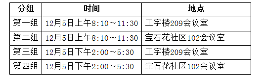 校级项目结题答辩分四个评审组并行开展,具体分组、时间及地点安排如下: