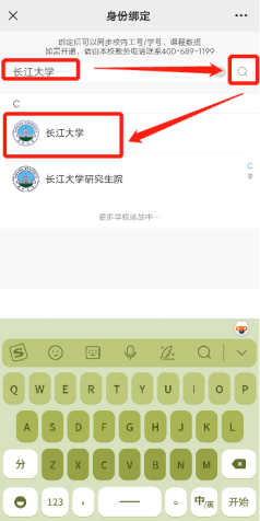 1.关注长江雨课堂公众号 2.点击更多--身份绑定 3.搜索长江大学 4.点击前往绑定 5.输入统一身份认证系统账密绑定