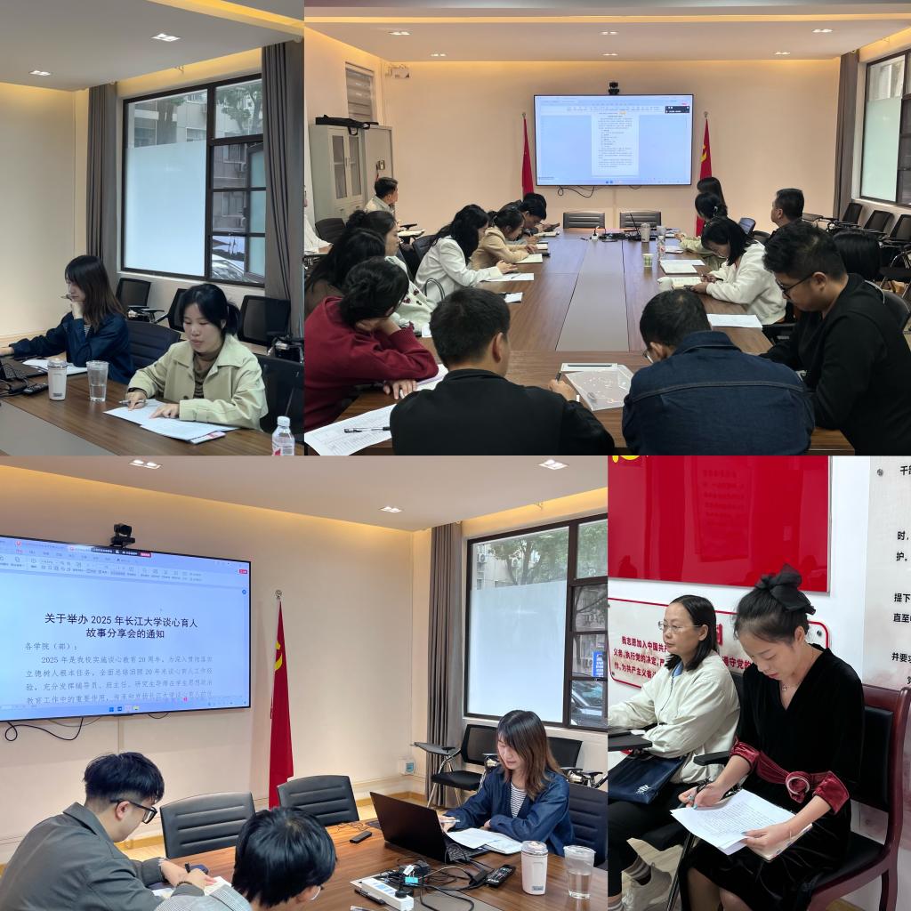今年是长江大学实施谈心教育20周年,为了全面梳理实践成果与先进经验,学校围绕主题策划了系列活动。会上,张思祺、万钰、徐潞杰、刘芳老师依次对谈心教育20周年“故事分享会、历史图文展、优秀案例评选、短视频创作大赛”四项子活动进行了宣讲,呼吁各学院(部)师生积极响应、大力配合、踊跃参与。