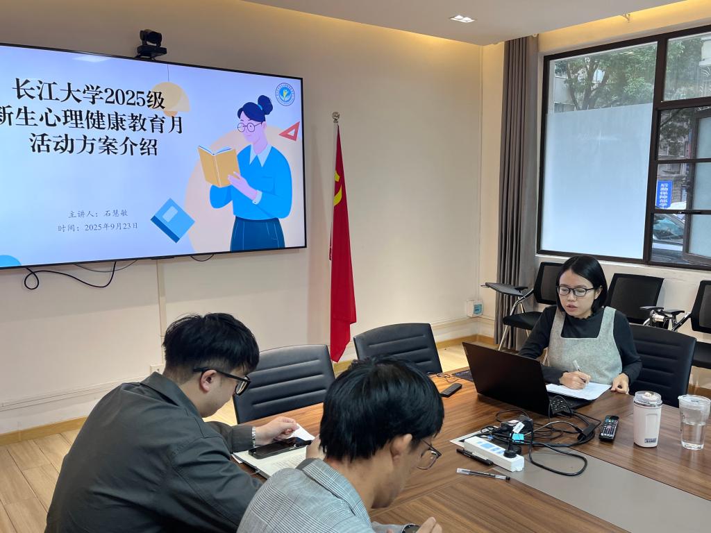 石慧敏老师介绍了“长江大学2025级新生心理健康教育月”系列活动安排,要求各学院(部)统筹策划、精心组织、抓好落实,通过进一步凝聚合力,营造积极向上的校园氛围,引导新生形成“悦纳自我,关爱他人”的优秀心理品质。