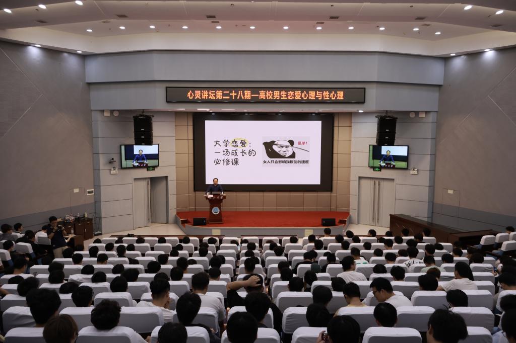 本科生院讯(通讯员 刘芳 万闽琪/文 彭梓航/摄)“拥抱成长,与爱同行”。9月25日下午,长江大学武汉校区学术报告厅座无虚席,“心灵讲坛”第28讲正在火热进行。本次讲坛特邀华中科技大学心理健康教育中心副主任、中国心理学会注册心理师、湖北省心理健康教育与咨询研究会副秘书长雷光辉主讲,聚焦男生恋爱与性心理,来自各学院的300余名男同学共上了一节生动的心理健康课。