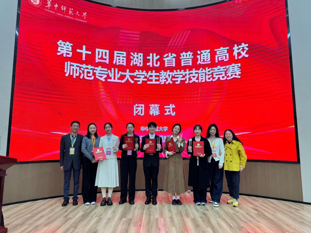(通讯员 廖作伟)11月7-8日,第十四届湖北省普通高校师范专业大学生教学技能竞赛决赛在华中师范大学隆重举行,来自全省各高校的优秀师范生齐聚一堂,我校参赛选手表现突出,荣获了一等奖2项、二等奖3项、三等奖5项的优异成绩,总成绩位列全省参赛高校前列,本科生院相关工作人员获得了“个人优秀组织奖”。