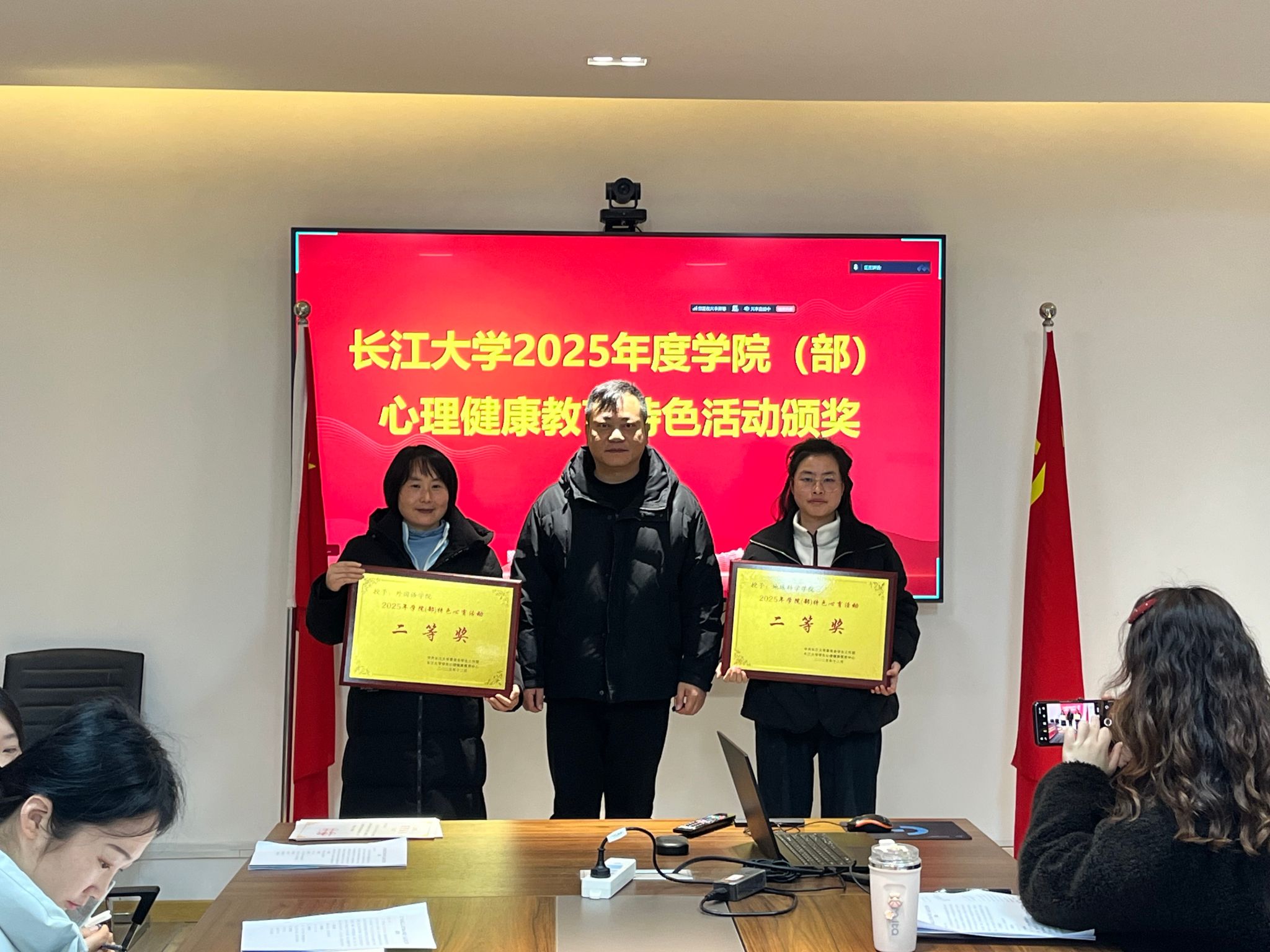 会议还对长江大学2025年度学院(部)心理健康教育特色活动进行了表彰,共有6个学院(部)凭借创新思维与突出成效获此殊荣。本科生院副院长、党委学生工作部副部长、学生心理健康教育中心主任颜学俊老师为获奖单位颁发奖牌,充分肯定了各学院(部)在心理育人领域的积极探索,鼓励其砥砺深耕再创佳绩。