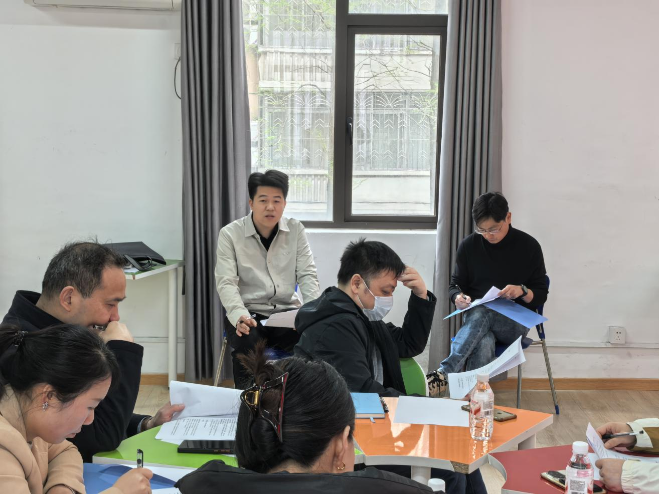 案例分享结束后,与会辅导员围绕案例核心困惑分组开展深入研讨,聚焦试探性自杀行为干预尺度、诊断不明情况下的学生支持策略、校内心理支持系统协同构建等重点问题,交流工作心得、分享应对技巧,现场研讨氛围浓厚。活动特别设置情景模拟环节,针对学生复学后情绪波动、考前心理焦虑等高频真实场景,组织辅导员开展现场谈心沟通演练,直观展示科学应对方法,强化实操能力。程坤对各组研讨成果与模拟表现逐一点评,结合自身丰富的学生工作实务经验,提出针对性的科学思路与优化建议,推动研讨成果转化为实际工作能力。