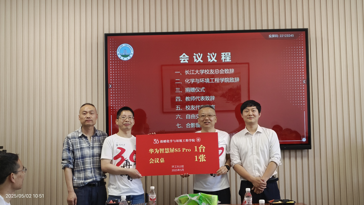 凝聚校友力量反哺母校:2025年5月在江汉石油学院环工911同学毕业30年回母校聚会时,魏老师作为环工911的一员与同学们共同向化工学院捐赠华为智慧屏及会议桌各一,助力学院教学与会议条件升级。