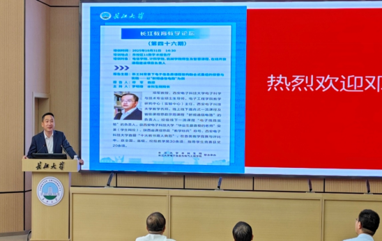 (通讯员 贾丽丽)2025年10月31日下午两点半,西安电子科技大学电子科学与技术专业邓军教授做客长江教育教学论坛,以“新工科背景下课程架构融合式重组的探索与实践——以‘射频通信电路’课程为例”为题,为我校师生带来了一场深入浅出、精彩纷呈的专题报告。本次论坛由本科生院和电子信息与电气工程学院联合承办,本科生院院长罗明璋主持,电信学院、计算机学院、机械学院等单位的师生代表,以及智慧课程、在线开放课程建设项目负责人共同聆听了报告。